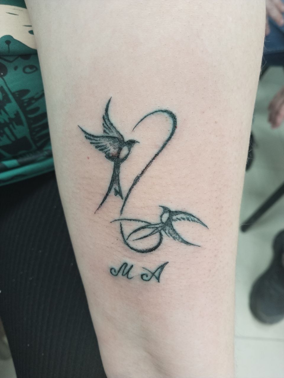 Татуировка две ласточки Татуировка нож с паутиной Описание татуировки Легкая теневая женская татуировка в виде двух ласточек и инициалами девушки и его друга. Похожие татуировки: руки Татуировка на руке «Роза» Татуировка на кисти Татуировка в виде птичьего крыла, выполнена в традиционной теневой технике Покажите татуировку друзьям!