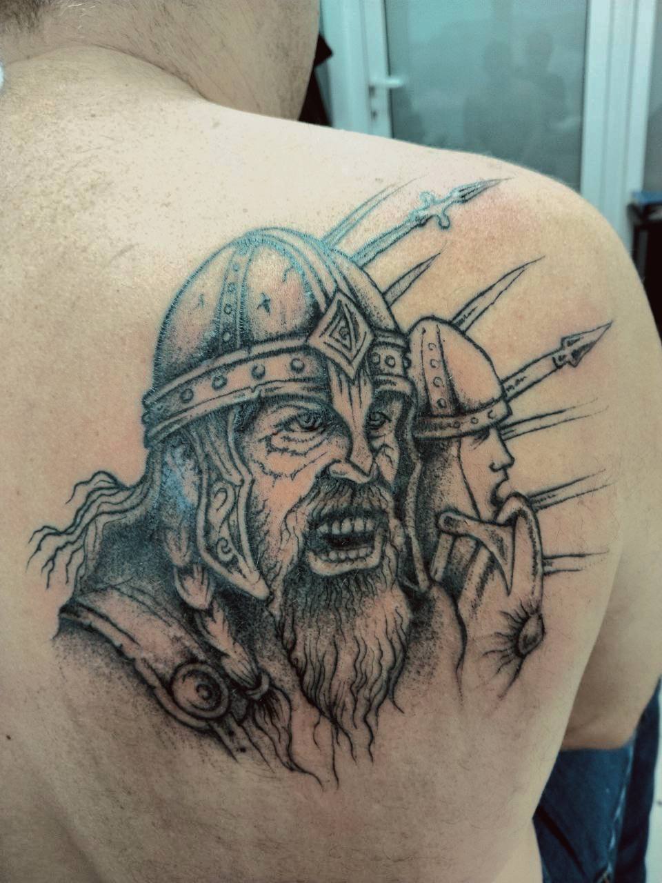 Итак, будущее наступило. Клиент принес эскиз, не найденный на просторах интернета, не срисованный с кого-то. Эскиз сгенерировал искусственный интеллект по запросу «Воин-Викинг». Как видите результат получился вполне достойный!